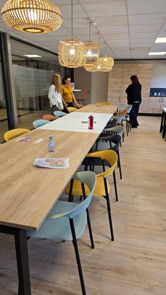 Nous venons donc d'aménager sur les site de Châteauneuf-de-Gadagne et Cabrières-d'Avignon , les sujets à traiter étaient les espaces repas , les accueils, salles de réunion et open spaces.