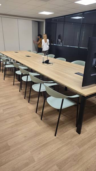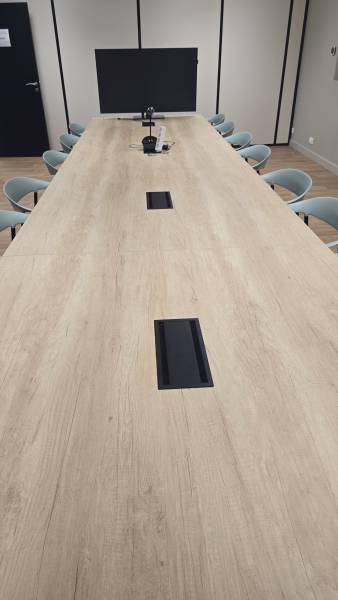 La gamme Astro a été également utilisée pour les salles de réunion avec des tables carrées éléments départs éléments suivants avec électrification.