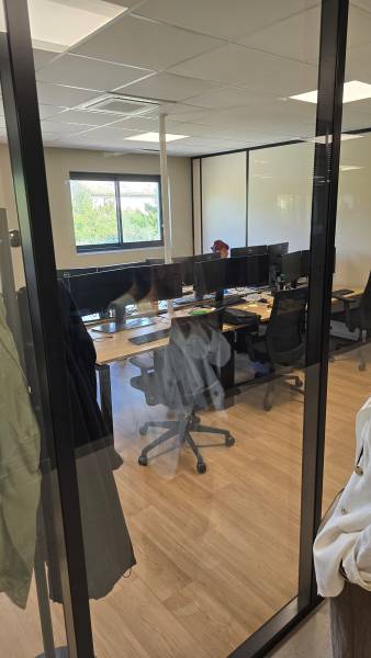 Nous avons réalisé sur ce projet une pose de vitrophanie sur les cloisons vitrées toute hauteur et posé du covering sur des surfaces qui n'ont pas été rénovées.