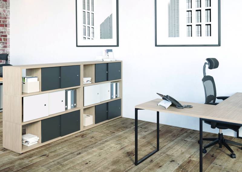 Les bibliothèques Kubo offrent des solutions de rangement à proximité, à la fois décoratives et fonctionnelles, dans un style contemporain. Leur finition soignée associe des combinaisons bicolores, tandis que les portes coulissantes les rendent faciles à utiliser. Que ce soit dans des espaces de travail formels ou informels, Kubo s'intègre parfaitement, créant ainsi une harmonie visuelle.