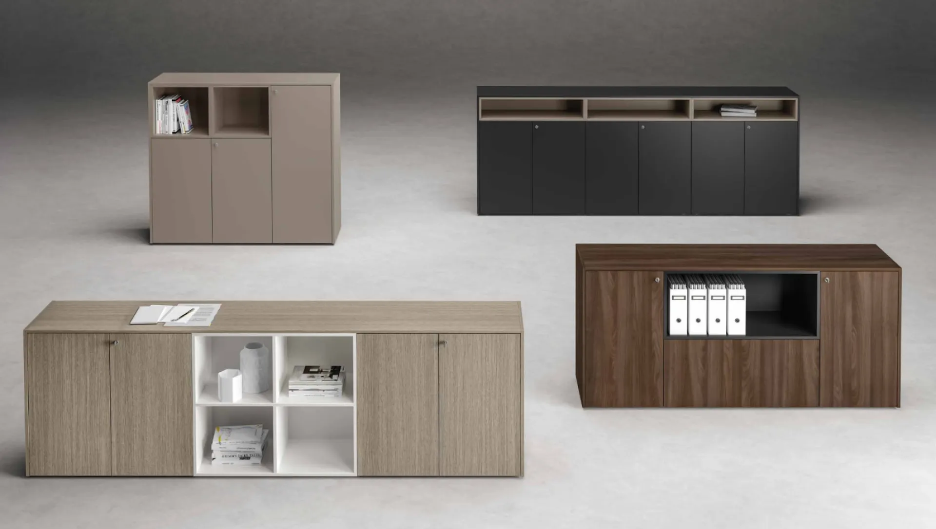 La qualité de fabrication ainsi que l'élégance de ces produits nous offrira la possibilité d'intégrer ces armoires et bibliothèques dans les bureaux opératifs et dans les bureaux de direction.