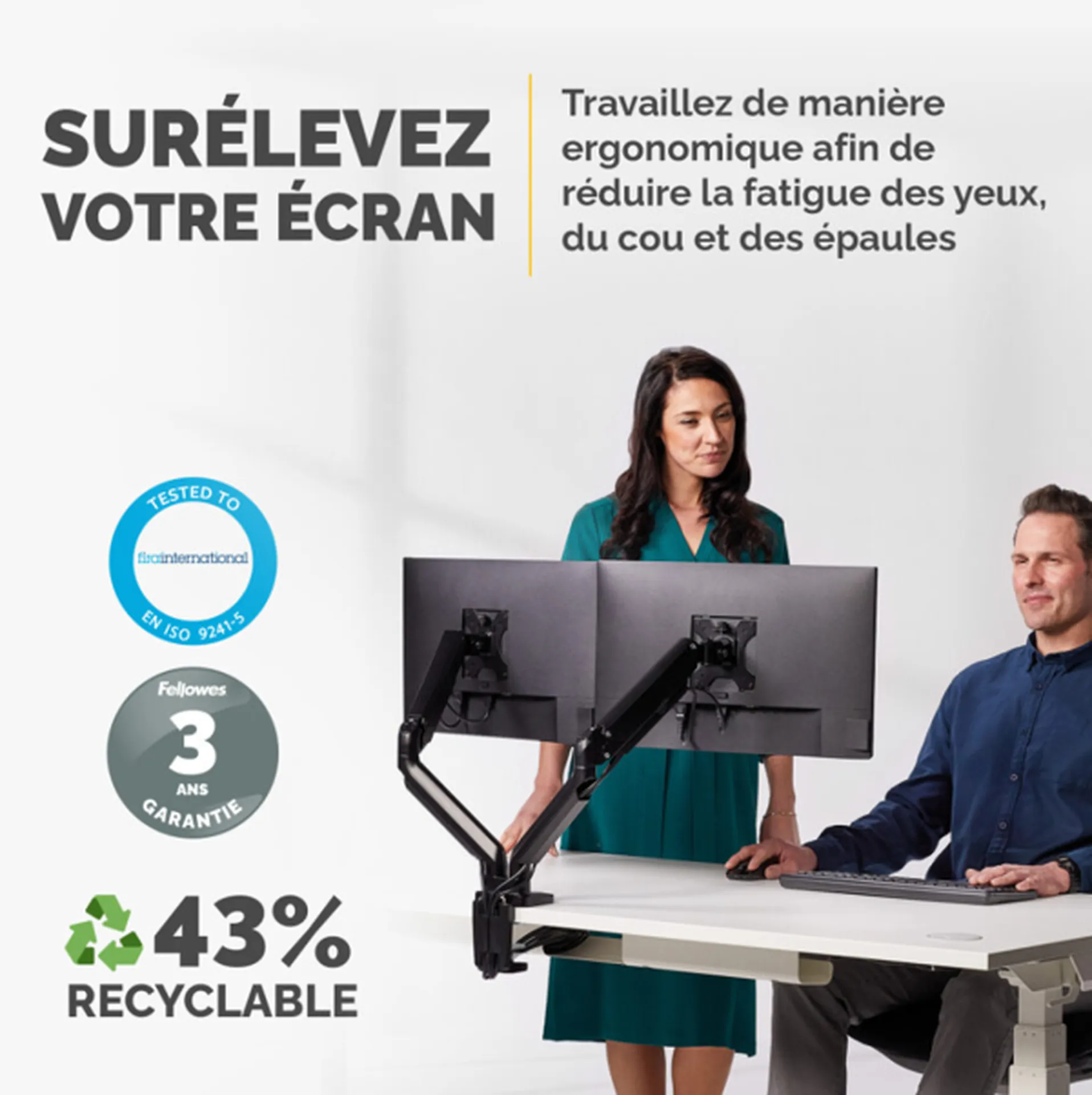 Rendez votre espace de travail plus ergonomique en installant des bras support écrans.