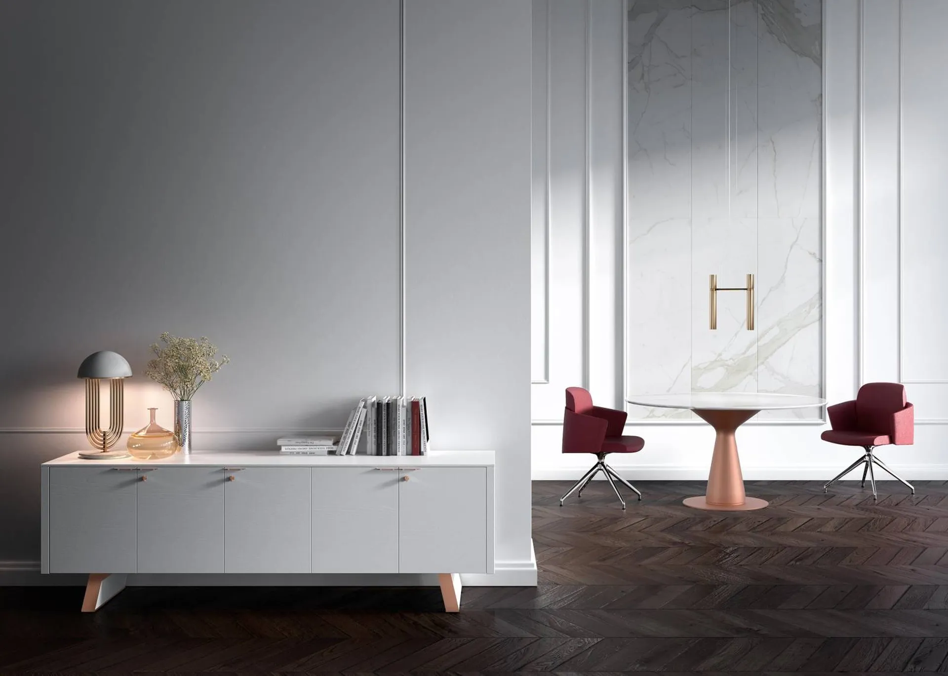 Étant disponible dans une large palette de finitions, il s'harmonise avec tous les styles d'intérieur et valorise votre image dès l'entrée dans le bureau.