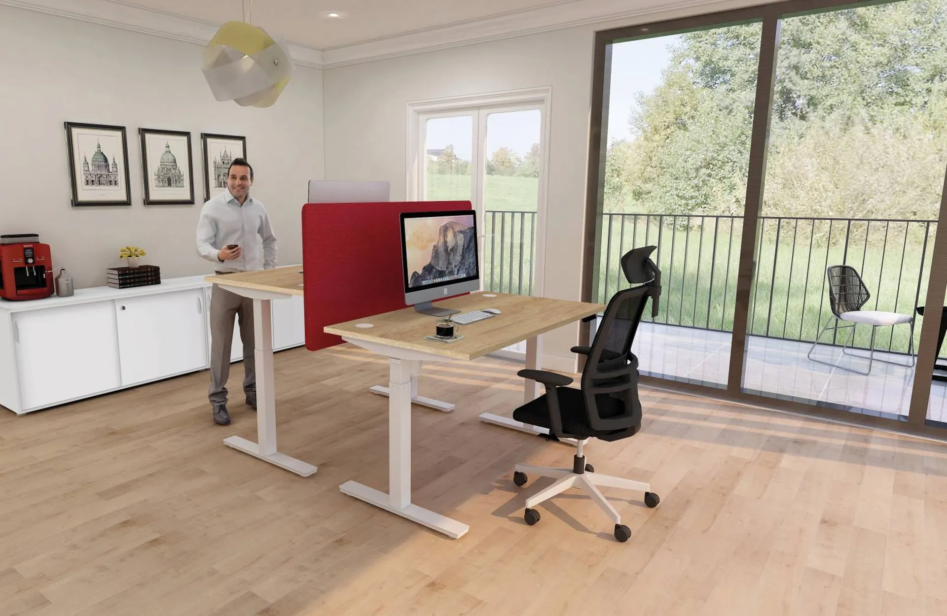 Le bureau électrique ENVOL ONE réglable en hauteur du fabricant Français BURONOMIC combine ergonomie, simplicité et robustesse, idéal pour les espaces de travail modernes. Grâce à son réglage électrique, il permet de passer facilement d'une position assise à debout, avec une plage de hauteur allant de 73 cm à 121 cm. Cette flexibilité rend le bureau adapté à différents usages: télétravail, open-space ou bureau individuel.