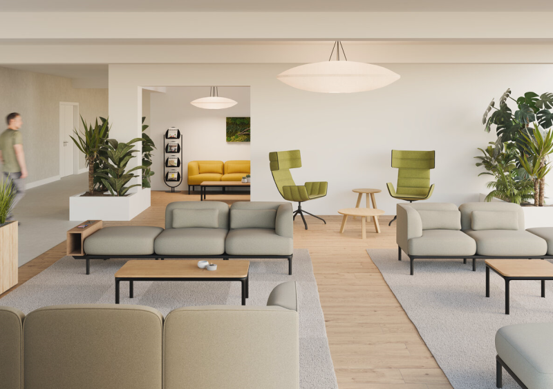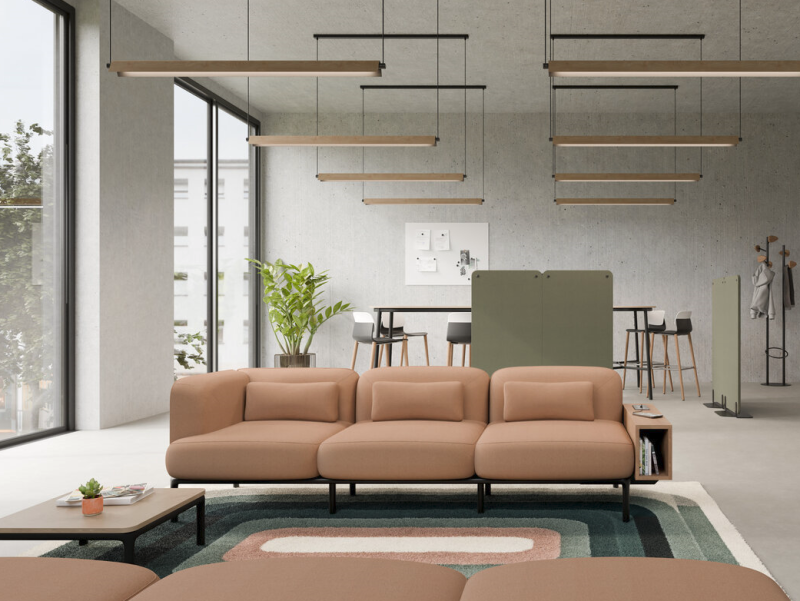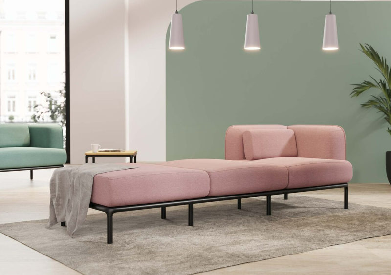On pourra retrouver le canapé Rhune dans les accueils de bureaux, les espaces de coworking, dans les hôtels et même à la maison.