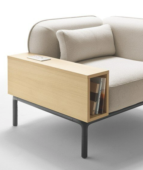 Sur les canapés on pourra également intégrer l'accoudoir bois.