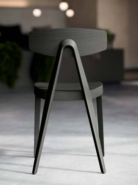 La structure en frêne massif, disponible en finition chêne, noyer ou laqué blanc et gris ombre, garantit non seulement la durabilité de la chaise, mais aussi un style raffiné qui s'adapte parfaitement aux environnements modernes et professionnels. Son siège rembourré et tapissé assure un confort optimal, même lors de longues heures d'utilisation.