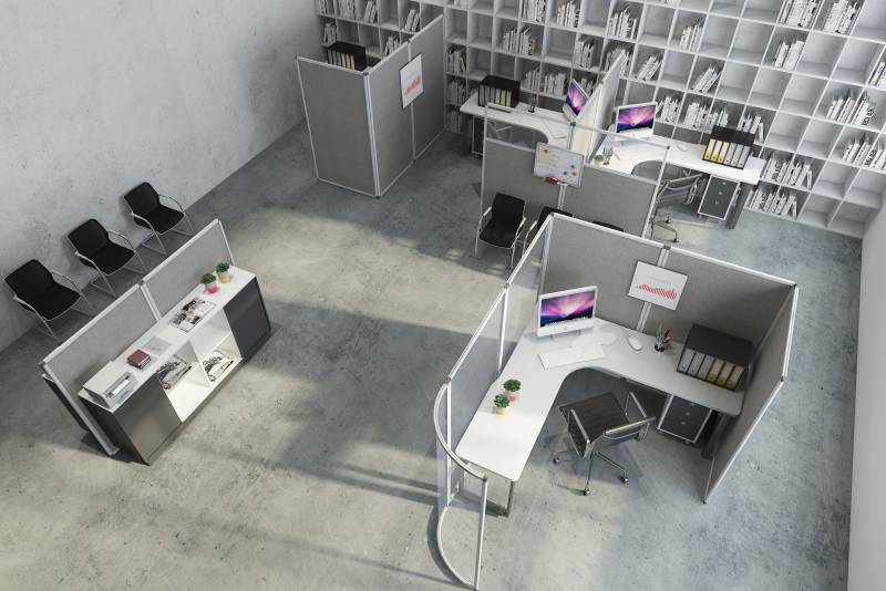 Faites le choix d'un aménagement de bureau flexible, moderne et ergonomique avec la cloison amovible mi-hauteur.