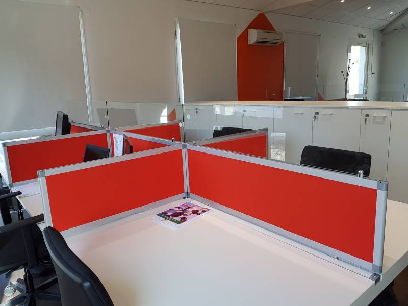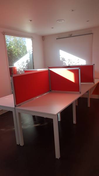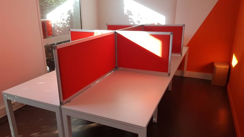 Afin d'améliorer le confort acoustique, chaque poste est délimité par des écrans de séparation super acoustiques REYEM. Positionnées entre les utilisateurs se faisant face à face et sur les côtés, elles réduisent efficacement la transmission des bruits environnants, particulièrement fréquents dans un environnement téléphonique. Leur design soigné et leurs performances acoustiques créent un espace propice à la concentration et au bien-être.