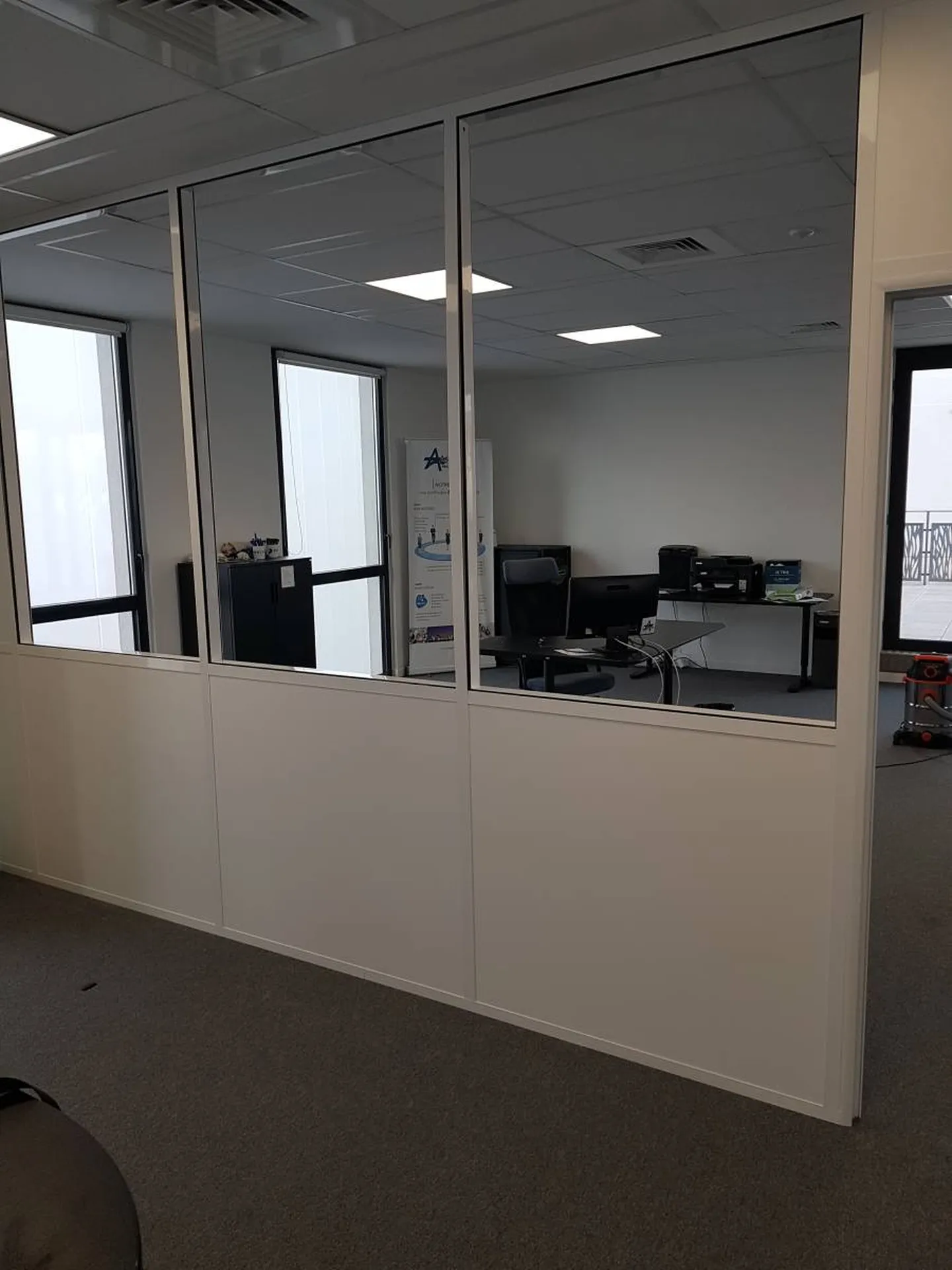 Chez CONCEPTYS AMÉNAGEMENT, nous concevons et aménageons vos bureaux avec des cloisons amovibles semi-vitrées ou vitrées en simple ou double vitrage, intégrant des portes avec cadres en aluminium. Ce type de cloisonnement favorise la luminosité naturelle tout en conservant une vue dégagée sur l'environnement de travail, apportant ainsi une atmosphère ouverte et chaleureuse.
