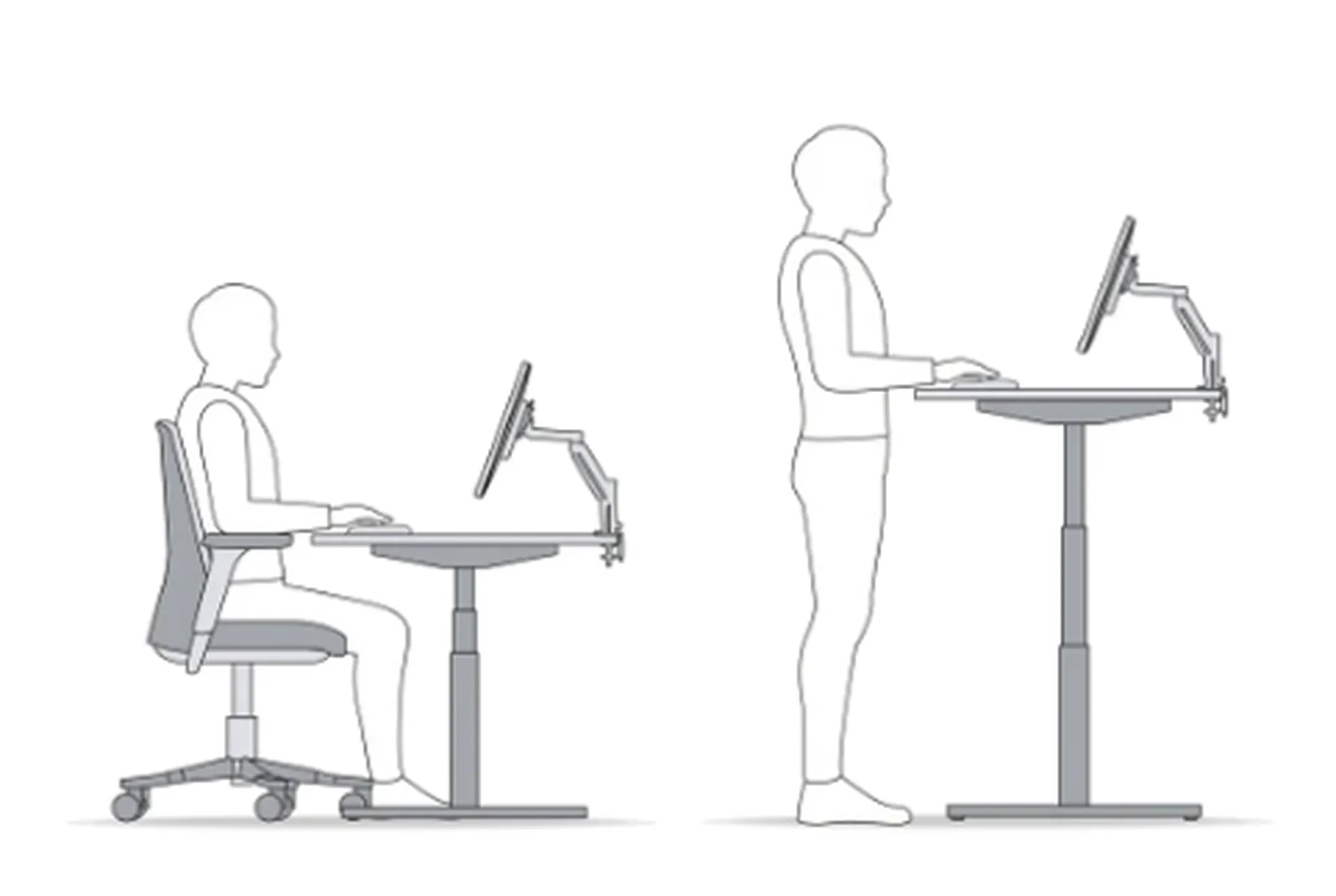 - Variabilité : Alternez entre les périodes de travail assis et debout. Si possible, utilisez un bureau réglable en hauteur pour alterner entre la position assise et debout.