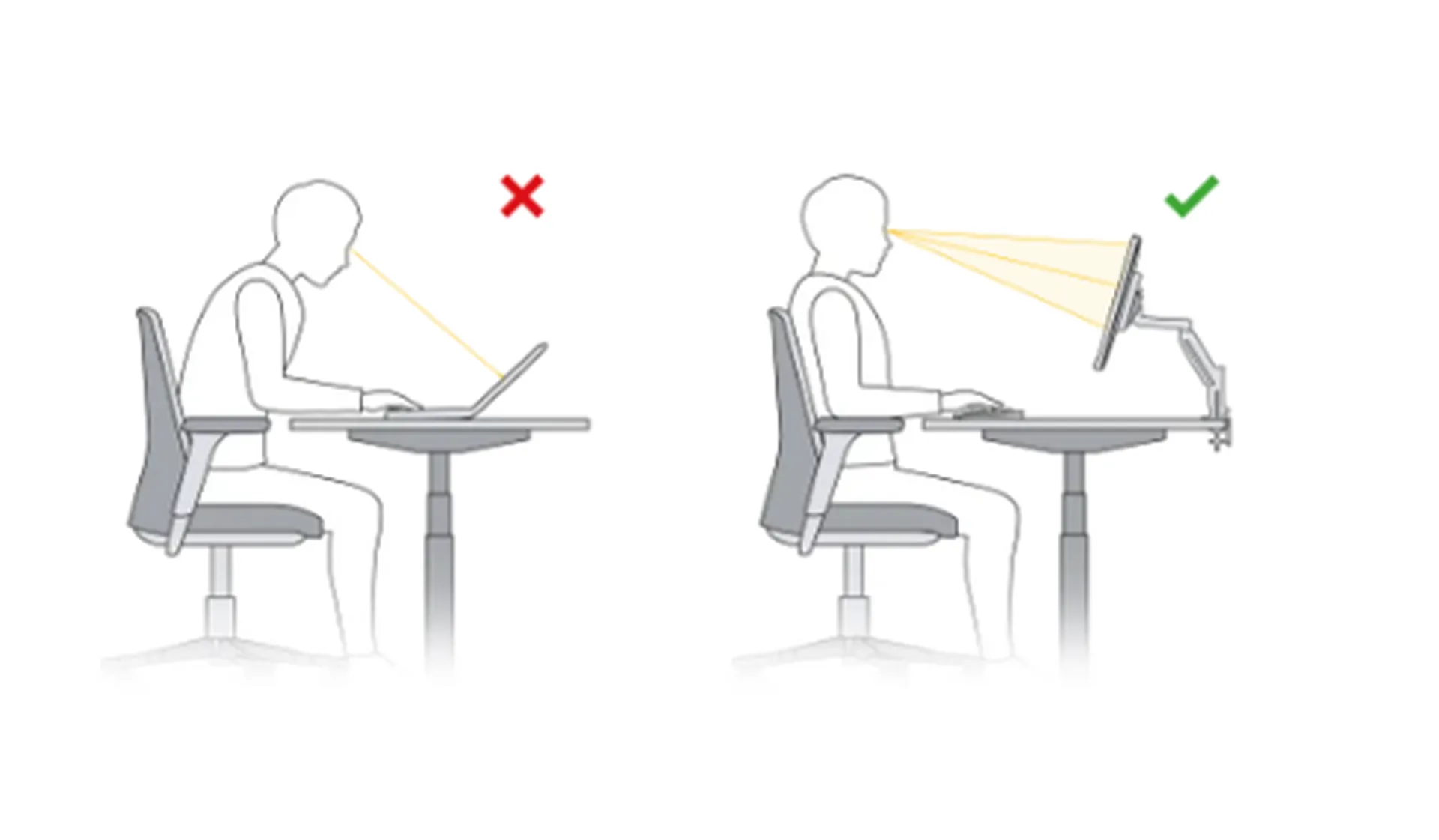 - Hauteur de l'écran : Le haut de votre écran doit être à la hauteur de vos yeux ou légèrement en dessous. Vous ne devez pas avoir à lever ou baisser la tête pour voir l'écran.