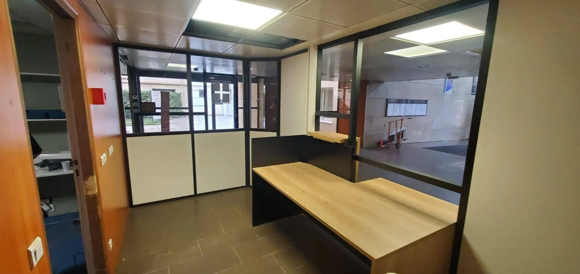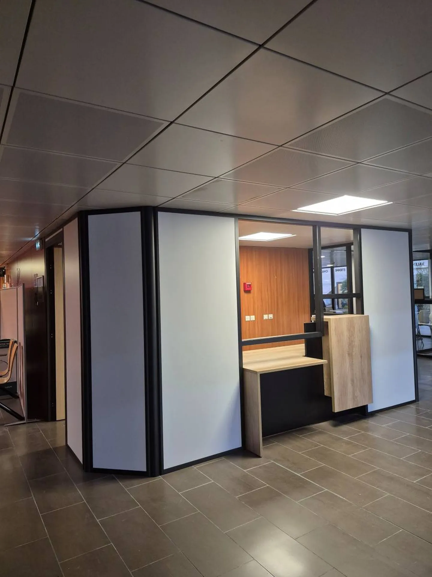 La réalisation de la nouvelle banque d'accueil FIFTY-FIFTY au sein de la clinique d'Alès s'inscrit dans une volonté glabale de modernisation du halla principal et d'amélioration du parcours des patients. Cette installation, pensée pour conjuguer esthétique, fonctionnalité et accessibilité, repose sur la mise en place de cloisons amovibles tout hauteur, alternant parties vitrées et pleines ainsi qu'une porte d'entrée intégrée. Ces cloisons semi-vitrées permettent de délimiter clairement l'espace d'accueil tout en conservant une grande luminosité naturelle, essentielle dans un environnement médiacal. Elles assurent également une isolation acoustique appréciable, améliorant ainsi le confort des patients comme du personnel.