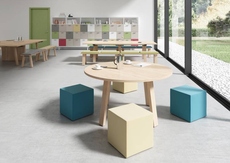 La collection FARM se décline en plusieurs dimensions et formes, permettant de composer des espaces à la fois esthétiques et fonctionnels. Sa structure robuste garantit une excellente stabilité, tandis que sa modularité facilite l'intégration d'accessoires technologiques tels que les passages de câbles ou de boîtiers de connectique. Cette conception pensée pour le confort d'usage en fait une solution idéale pour les réunions quotidiennes comme pour les moments de travail collectif.